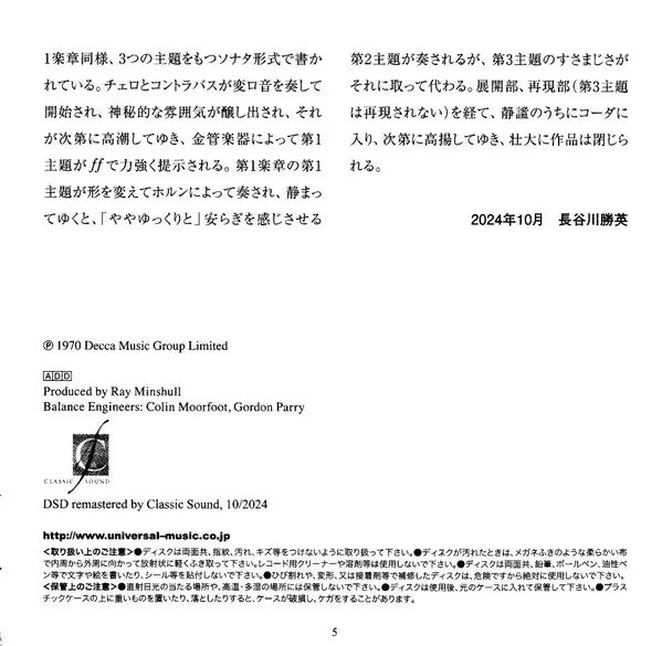 | További információk | Limited SHM-SACD Japan Remastered (Decca) |