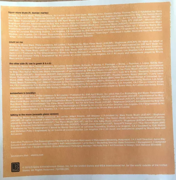 Bruno Mars: Doo-Wops & Hooligans A lemezen lévő változat CD - standard kiadás. Ez a különleges kiadás - Európa a kiadó által Elektra év 8. február 2011.
