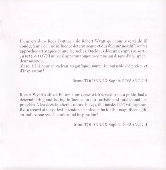 | Művész | Bruno Tocanne | Sophia Domancich | Antoine Läng | Rémi Gaudillat |