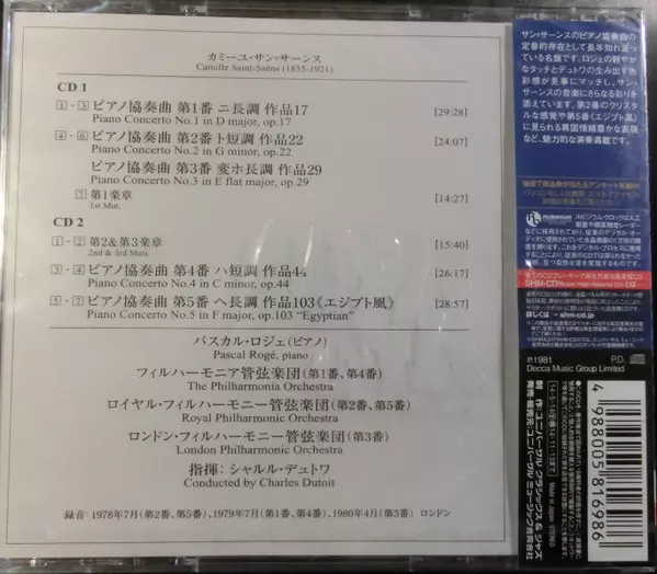 | Művész | The Royal Philharmonic Orchestra | Philharmonia Orchestra | Camille Saint-Saëns | Charles Dutoit | Pascal Rogé |