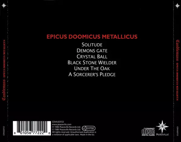 Candlemass založil v roce 1984 baskytarista a skladatel Leif Edling ve švédském Stockholmu a je známá svým epickým doom metalem, který měl obrovský vliv na celou generaci pozdějších velikánů tohoto žánru - samotné Candlemass silně ovlivnili Black Sabbath. "Epicus Doomicus Metallicus" je skutečnou žánrovou klasikou, kde je každá skladba pomníkem...