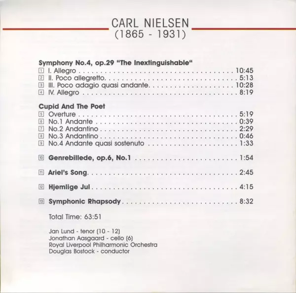 | Művész | Royal Liverpool Philharmonic Orchestra | Carl Nielsen | Douglas Bostock |