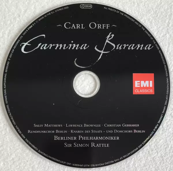| Művész | Berliner Philharmoniker | Sir Simon Rattle | Carl Orff | Sally Matthews | Christian Gerhaher | Lawrence Brownlee |