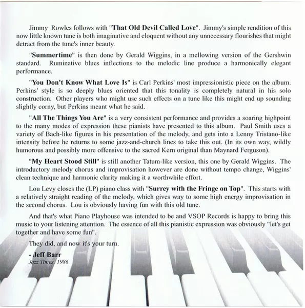 | Művész | Jimmy Rowles | Lou Levy | Paul Smith | Carl Perkins | Gerald Wiggins |