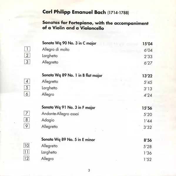 | Sonata Wq 90 No. 3 In C Major | 15:04 min | |