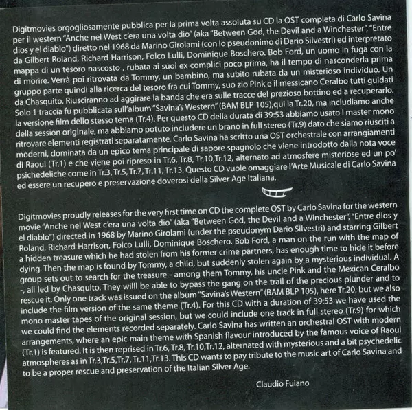 | Cím | Anche Nel West C'Era Una Volta Dio (Original Motion Picture Soundtrack) LTD |