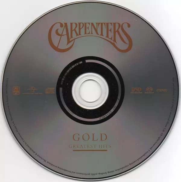 Carpenters: Carpenters Gold (Greatest Hits) A lemezen lévő változat SACD - standard kiadás. Ez a különleges kiadás - Hong Kong a kiadó által A&M Records a következőkkel együttműködve Universal Music Hong Kong év 10. augusztus 2018. Album műfajok között Pop, Ének, Ballada és Pop Rock.