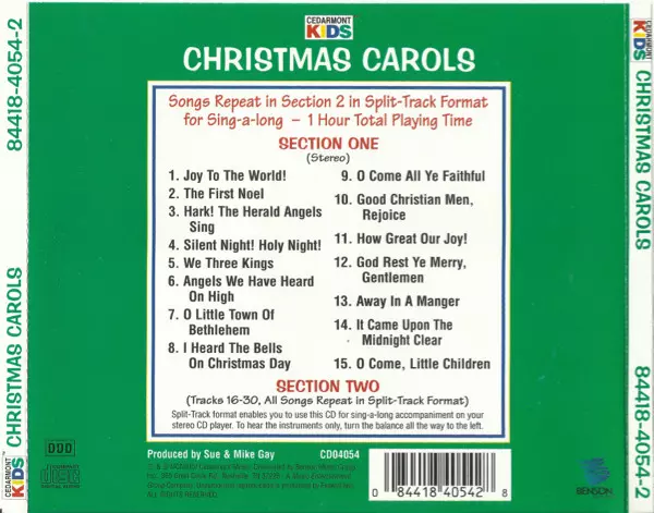 Cedarmont Kids: Christmas Carols A lemezen lévő változat CD - standard kiadás. Ez a különleges kiadás - USA a kiadó által Cedarmont Music a következőkkel együttműködve Benson Music Group év 14. november 2000. Album műfajok között Pop, Folk, World, & Country, Gyerek, Folk és Holiday.