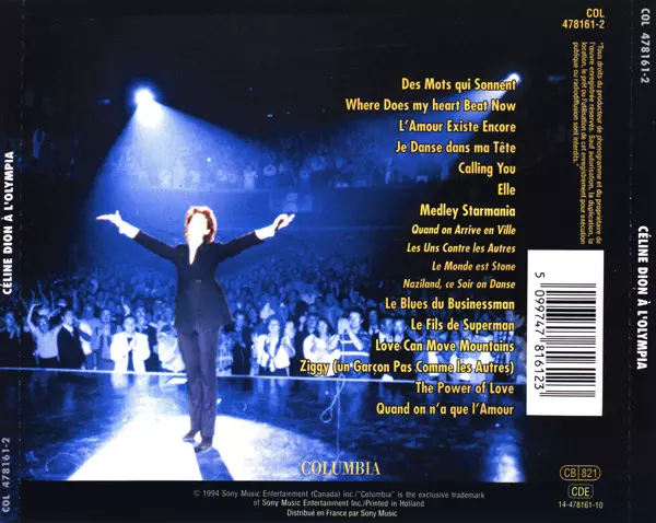 Céline Dion A live album, À L'Olympia, was released in 1994, capturing the singer's powerful voice and her spectacular stage presence. The album features live versions of some of Dion's biggest hits, including "The Power of Love" and "My Heart Will Go On". À L'Olympia is a must listen for all music fans Céline Dion.