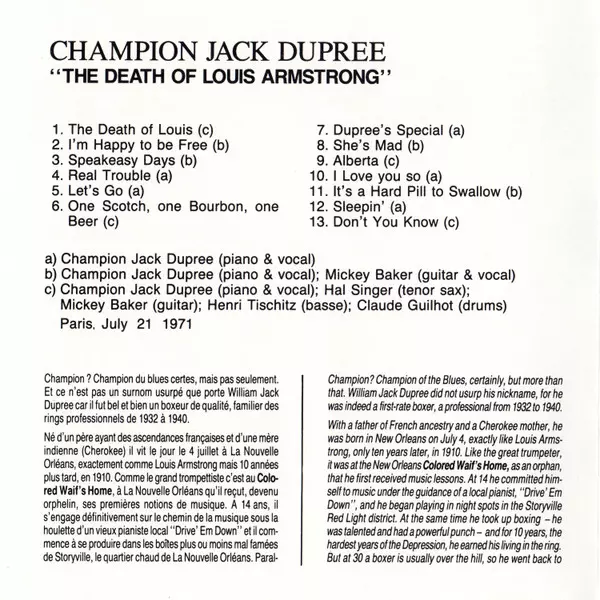 | Művész | Champion Jack Dupree | Mickey Baker | Hal Singer |