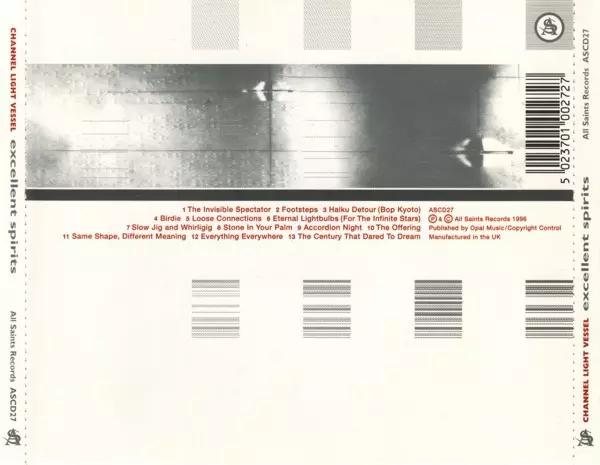 Channel Light Vessel: Excellent Spirits A lemezen lévő változat CD - standard kiadás. Ez a különleges kiadás - UK a kiadó által All Saints Records (2) napján jelent meg 1996. Album műfajok között Elektronikus zene és Ambient.