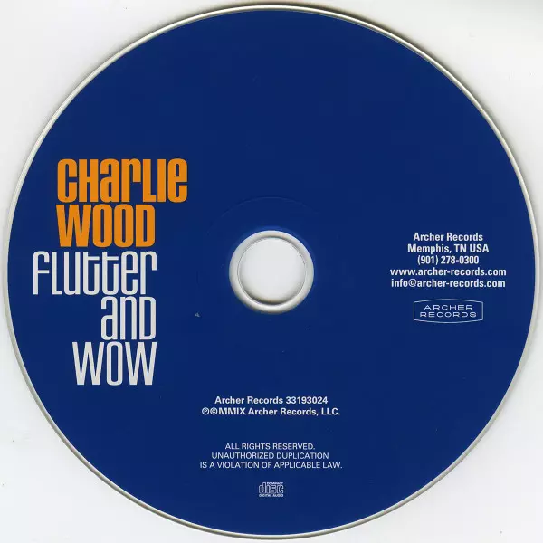 Charlie Wood: Flutter And Wow DIGI A lemezen lévő változat CD - digipack kiadás. Ez a különleges kiadás a kiadó által Archer Records év 20. október 2009. Album műfajba sorolható Jazz. Digipack.