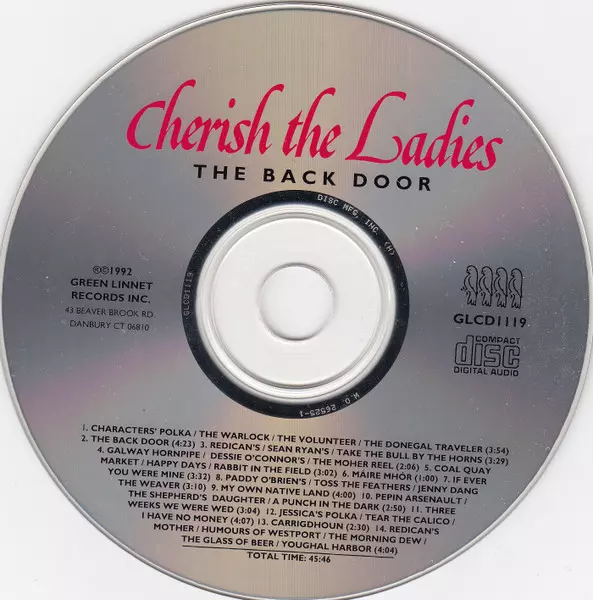 Cherish The Ladies: The Back Door A lemezen lévő változat CD - standard kiadás. Ez a különleges kiadás - USA a kiadó által Green Linnet év 1. június 2017. Album műfajok között Folk, World, & Country, Folk és Kelta zene.