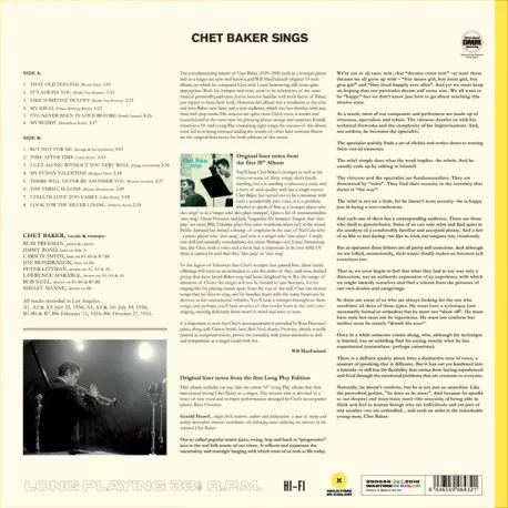 Chet Baker (1929-1988) je dnes dobře známý jako trumpetista i zpěvák. Chetova trubka i jeho hlas se zdají být prodloužením téže hudební osobnosti, a jakmile se seznámíte s oběma Bakerovými aspekty, očekáváte, že uslyšíte obojí. Toto album však bylo ve své době zjevením, které Bakerovi přineslo novou slávu a nové publikum, jež nebylo tolik obezn...