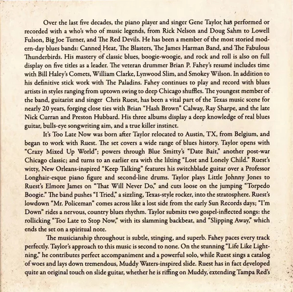 | Cím | It's Too Late Now |