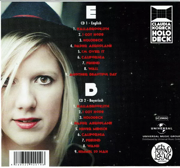 Claudia Koreck: Holodeck A lemezen lévő változat 2CD - standard kiadás. Ez a különleges kiadás - Németország a kiadó által Honu Lani Records év 23. június 2017. Album műfajok között Rock, Pop, Ballada és Folk Rock.