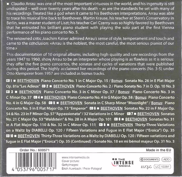 Claudio Arrau: Plays Beethoven, Milestones Of A Piano Legend A lemezen lévő változat 10CD - standard kiadás. Ez a különleges kiadás - Európa a kiadó által The Intense Media a következőkkel együttműködve Documents év 18. szeptember 2020. Album műfajok között Rock, Pop, Klasszikus zene, Színpad és képernyő, Pop Rock, Románcok és Soundtrack.