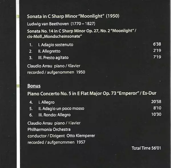 Composed By Ludwig van Beethoven | Conductor Otto Klemperer | Orchestra Philharmonia Orchestra | Piano Claudio Arrau