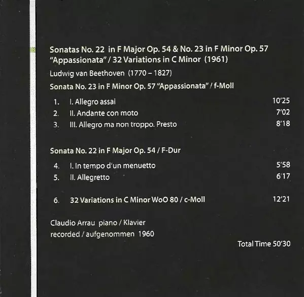 Sonatas No. 22 In F Major Op. 54 & No. 23 In F Minor Op. 57 “Appassionata” / 32 Variations In C Minor (1961)