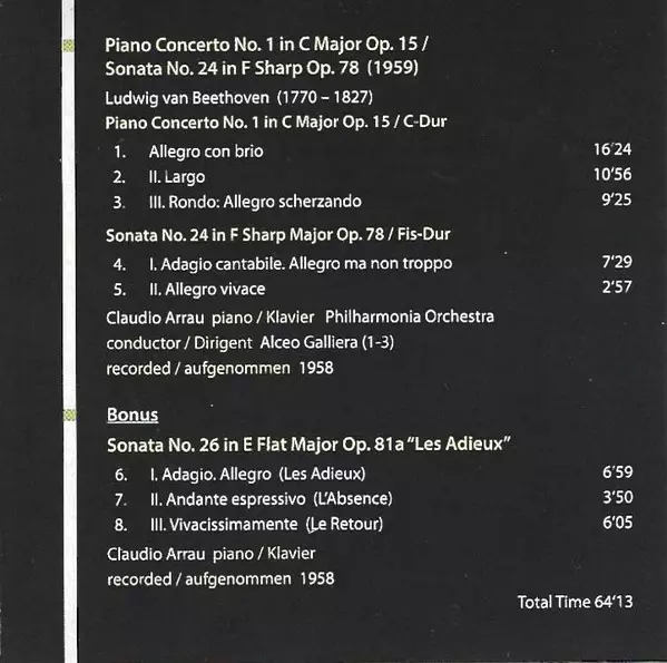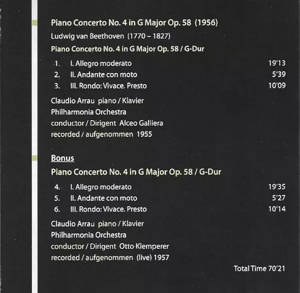 Composed By Ludwig van Beethoven | Conductor Alceo Galliera | Orchestra Philharmonia Orchestra | Piano Claudio Arrau