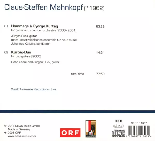 | Művész | Johannes Kalitzke | Jürgen Ruck | Elena Casoli | Claus-Steffen Mahnkopf | Österreichisches Ensemble Für Neue Musik |