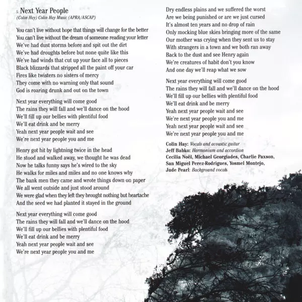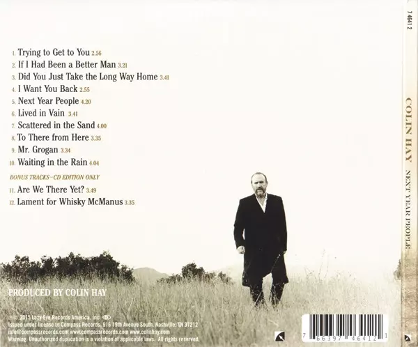 Colin Hay: Next Year People DLX A lemezen lévő változat CD - deluxe kiadás. Ez a különleges kiadás - USA a kiadó által Compass Records a következőkkel együttműködve Lazy Eye Records év 1. június 2017. Album műfajok között Rock és Folk, World, & Country. Deluxe Edition.