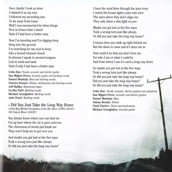 Acoustic Guitar Richard Jacques (4) | Piano Larry Goldings | Vocals, Acoustic Guitar Colin Hay