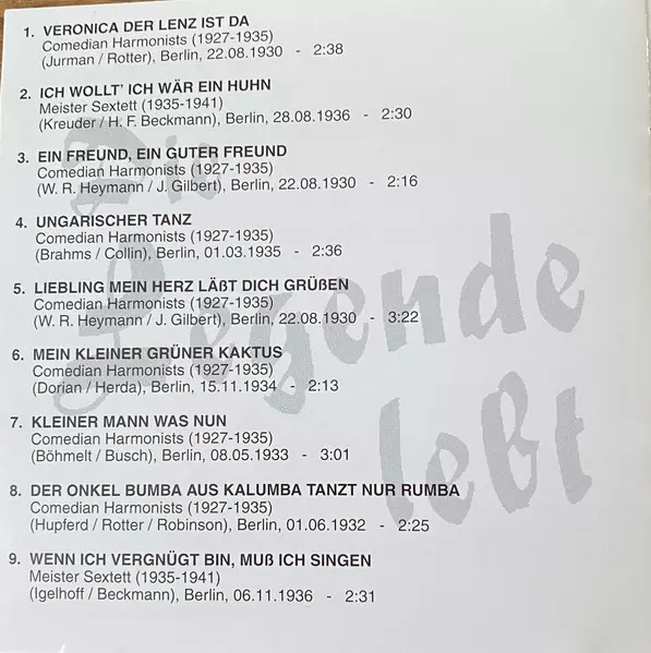| 8 | Comedian Harmonists: Der Onkel Bumba Aus Kalumba Tanzt Nur Rumba | ||