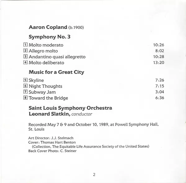 | Művész | Aaron Copland | Saint Louis Symphony Orchestra | Leonard Slatkin |