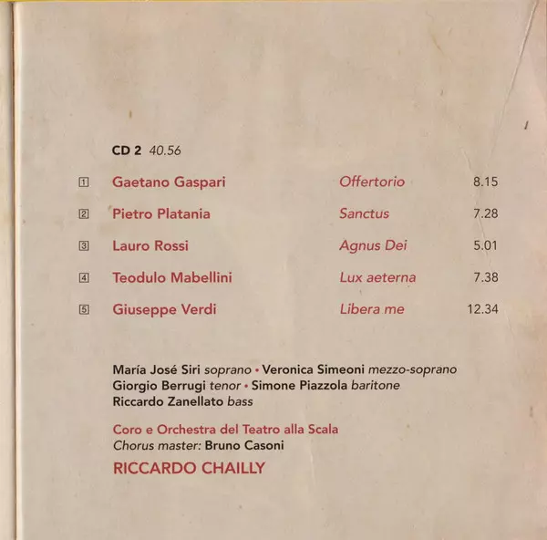 | Művész | Orchestra Del Teatro Alla Scala | Coro Del Teatro Alla Scala | Riccardo Chailly |