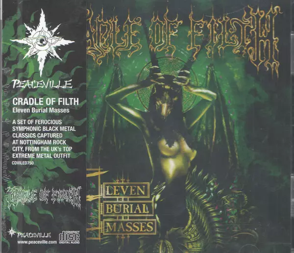 The 2001 concert album "Eleven Burial Masses" by British black metallers Cradle Of Filth is now out for the first time as a 2-LP. The concert was recorded in 2001 at the legendary Rock City club in Nottingham and features many classic tracks such as "Dusk And Her Embrace", "The Principle Of Evil Made Flesh", "Summer Dying Fast" and many more.