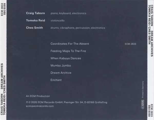 | Művész | Craig Taborn | Ches Smith | Tomeka Reid |
