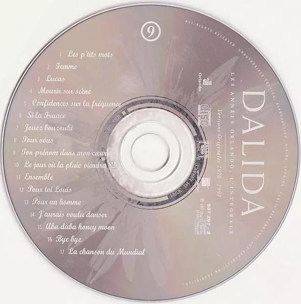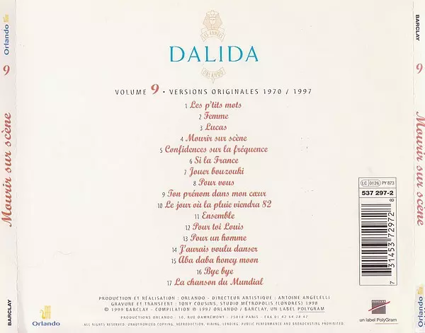 Dalida: Mourir Sur Scène A lemezen lévő változat CD - standard kiadás. Ez a különleges kiadás - Franciaország a kiadó által Orlando a következőkkel együttműködve Barclay év 17. február 2023. Album műfajok között Pop és Chanson.