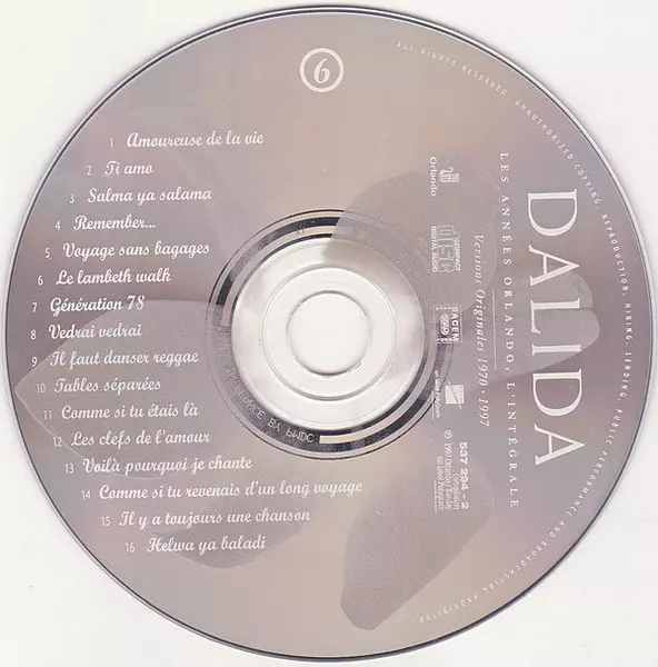 Dalida: Salma Ya Salama A lemezen lévő változat CD - standard kiadás. Ez a különleges kiadás - Franciaország a kiadó által Orlando a következőkkel együttműködve Barclay év 7. augusztus 2000. Album műfajok között Pop és Chanson.