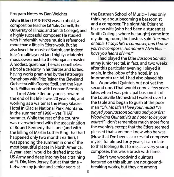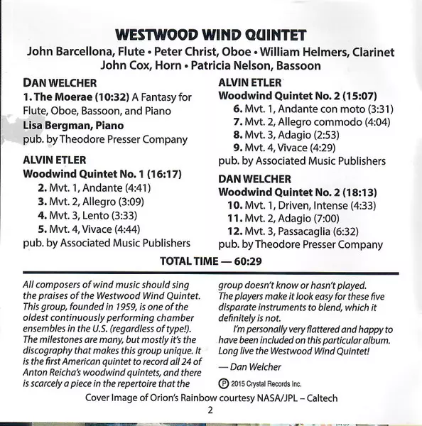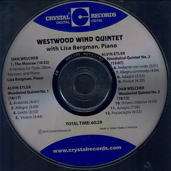 | Művész | Dan Welcher | Westwood Wind Quintet | Alvin Etler | Lisa Bergman |