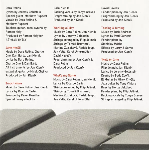 Backing Vocals Tonya Graves | Bass Guitar Jan Jakubec | Drums Bady (2) | Electric Piano [Fender], Arranged By [Strings] Filip Jelínek | Guitar [Electric] Miroslav Chyška | Guitar [Jazz] Antonín Viktora | Lyrics By Jeremy Goldstein (2) | Music By Darina Rolincová, Filip Jelínek, Jan Klenik | Producer, Programmed By Jan Klenik | Strings David Havelík, Jan Valta (2), Karel Untermüller, Martina Zuziaková, Radek Trupl, Tomáš Brummel