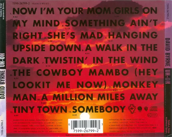 David Byrne: Uh-Oh A lemezen lévő változat CD - standard kiadás. Ez a különleges kiadás - Európa a kiadó által Luaka Bop a következőkkel együttműködve Sire és Warner Bros. Records év 3. március 1992. Album műfajok között Rock, Pop és Alternative rock.
