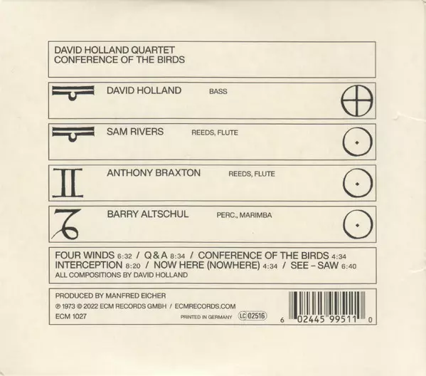 Album Conference of the Birds, nahrané v roce 1972, bylo prvním albem Davea Hollanda jako jediného leadera ECM. Je plné progresivního jazzu a má historický význam, protože na něm poprvé společně nahrávali Sam Rivers a Anthony Braxton, dva nejoriginálnější saxofonisté žánru. Toto vrcholné setkání si vysloužilo pochvalu tisku: "Pokud jste v novém ...