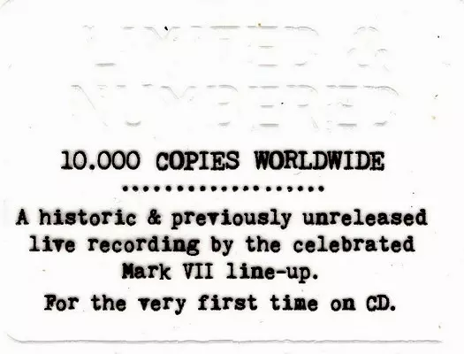 | További információk | Limited Numbered Digipack |