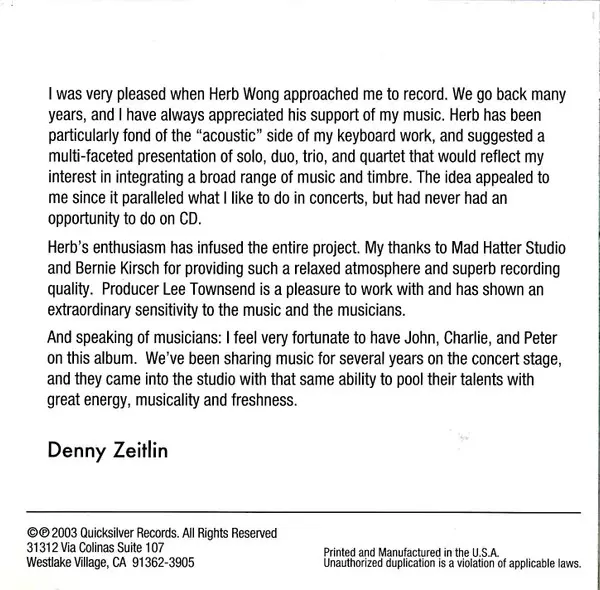 | Művész | Denny Zeitlin |