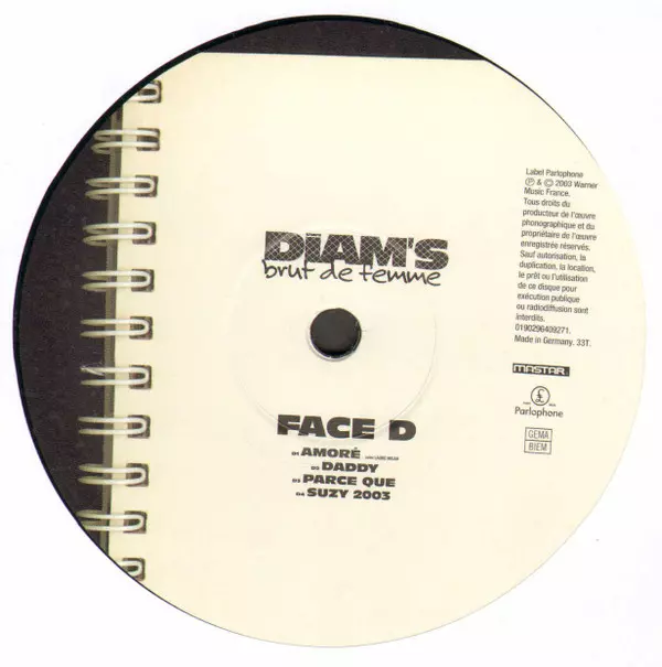 Diam's: Brut De Femme A lemezen lévő változat bakelitlemez 2LP - standard kiadás. Ez a különleges kiadás - Franciaország a kiadó által Parlophone a következőkkel együttműködve Mastar év 13. január 2023. Album műfajok között Hip Hop és Pop-Rap.