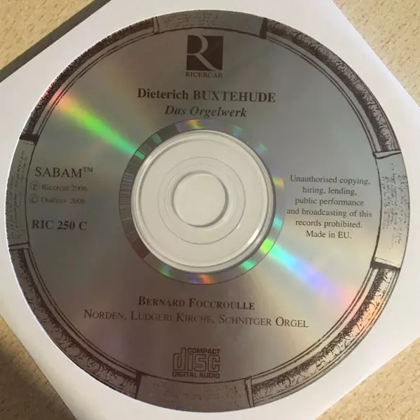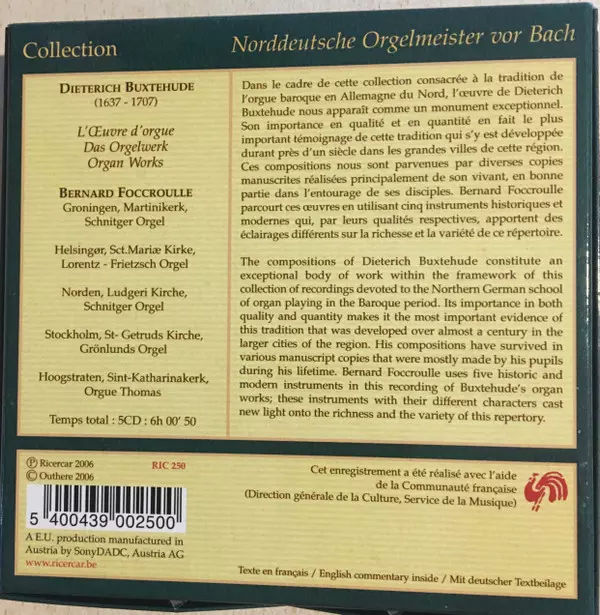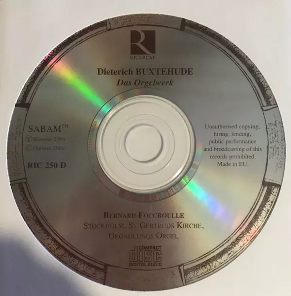 Dieterich Buxtehude: L'Oeuvre d'Orgue, Das Orgelwerke, Organ Works A lemezen lévő változat 5CD - standard kiadás. Ez a különleges kiadás - Európa a kiadó által Ricercar év 8. január 2008. Album műfajok között Klasszikus zene és Barokk zene. Box.