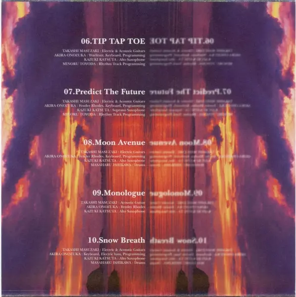 Drums Masaharu Ishikawa | Electric Guitar, Acoustic Guitar, Electric Bass Takashi Masuzaki | Piano, Keyboards, Programmed By Akira Onozuka | Soprano Saxophone Kazuki Katsuta