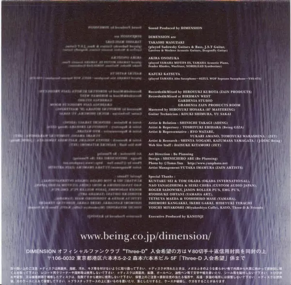 Drum Programming Minoru Toyoda | Electric Guitar, Acoustic Guitar Takashi Masuzaki | Electric Piano [Fender Rhodes], Keyboards, Programmed By Akira Onozuka | Soprano Saxophone Kazuki Katsuta
