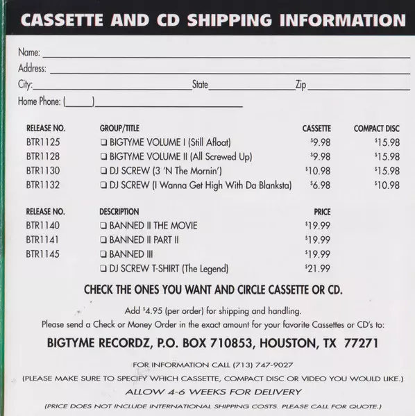 | 1-1 | E.S.G., DJ Screw: Intro | 1:02 min | |