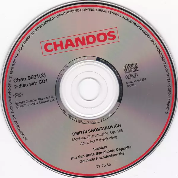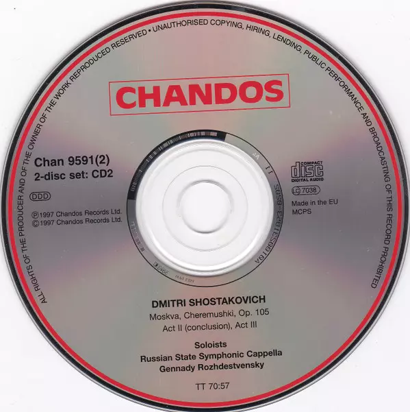 Dmitri Shostakovich: Moskva, Cheremushki A lemezen lévő változat 2CD - standard kiadás. Ez a különleges kiadás - Európa a kiadó által Chandos év 20. január 1998. Album műfajok között Klasszikus zene, Modernizmus és Operetta.