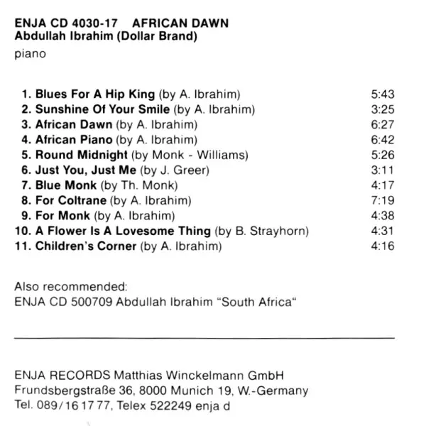 | Művész | Dollar Brand | Abdullah Ibrahim |