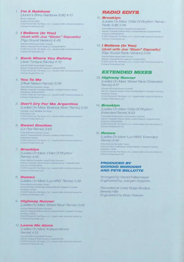 | További információk | Mediabook CD — Radio Edits & Extended Mixes |