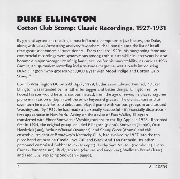 | 1 | Duke Ellington And His Cotton Club Orchestra: Cotton Club Stomp | 2:53 min | |