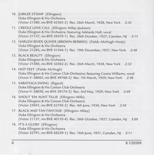 | 15 | Duke Ellington And His Cotton Club Orchestra: Saratoga Swing | 2:49 min | |